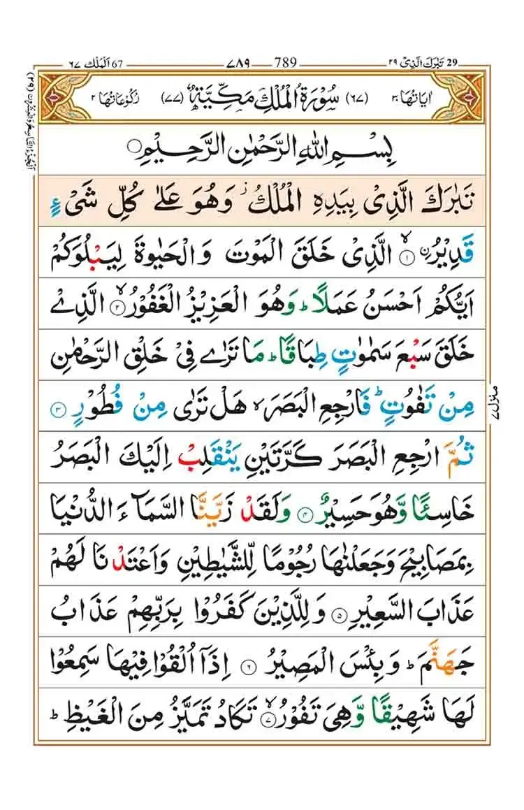 Surah Al Mulk is the sixty-seventh Surah of the Holy Quran. Surah Mulk was revealed in Mecca. it contains 30 verses. The prime theme of this surah is that “no individual can impose his will on another and Allah is the master of the whole universe and He has control over everything”.
